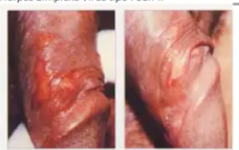 - Keluarnya cairan limfe dari kulit, yang berasal dari kelenjar limfe di selangkangan