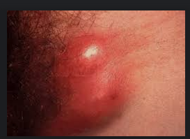 Granuloma inguinale bisa ditandai dengan munculnya benjolan merah berukur an kecil yang tidak terasa nyeri di area kelamin. Benjolan ini membesar secara perlahan, kemudian pecah dan membentuk luka. Jika dibiarkan tanpa pengobat an, luka ini dapat menjadi jaringan parut permanen. Borok tanpa rasa nyeri.Granuloma Inguinale atau Donovanosis disebabkan oleh bakteri Klebsiella granulomatis. Penyakit ini terjadi pada orang berusia umur antara 20-40 tahun yang aktif secara seksual. Perkembangan penyakit ini lambat, biasanya sekitar 17 hari setelah bakteri masuk kedalam tubuh hingga menimbulkan gejala dan diperlukan hingga 12 minggu sampai terdapat luka di kulit yang nyata. Tidak ditemukan gejala demam pada penyakit ini. Granuloma Inguinale sulit untuk dideteksi pada tahap awal. Penyakit ini disebabkan oleh bakteri Klebsiella granu lomatis yang hidup di dalam sel. Cara penularan terutama terjadi melalui kontak seksual, tapi diduga bakteri ini memiliki kemampuan menular yang rendah jadi diperlukan paparan berulang untuk terjadi nya penyakit ini. Tidak terdapat pembesaran limfe. Baru dicurigai Granuloma Inguinale apabila timbul luka (ulkus).